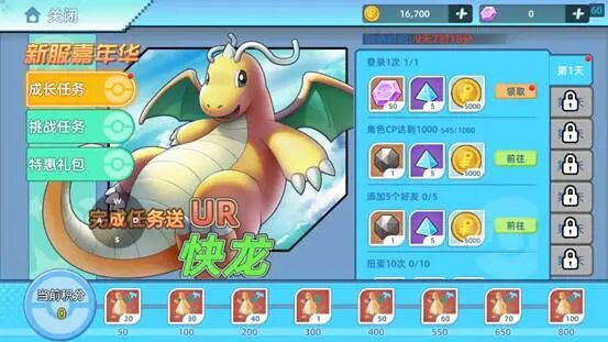 接下来就是第二个活动新服嘉年华完成任务获取快龙这个快龙的任务是非常推荐给他拿满的但是这个是非闪光快龙如果有想要快速拿满这个快龙的话可以去特惠礼包那里购买活动经验值