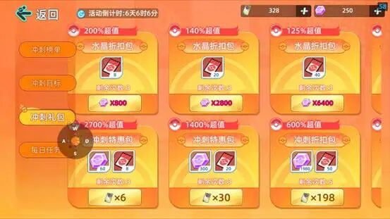 第一个活动是闪光甲贺忍蛙分别有三个档位 6元 68元 198元