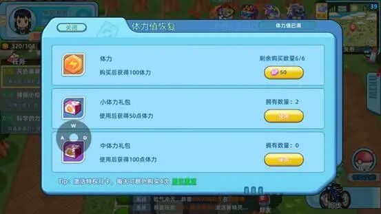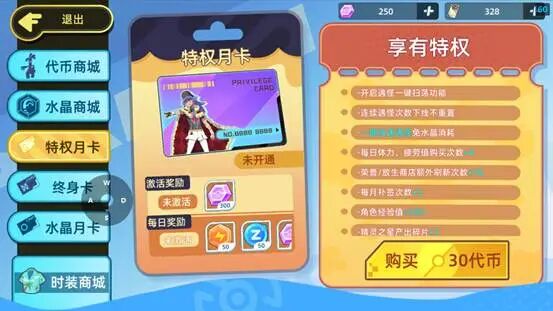 拥有了月卡之后可以增加购买体力这个体力可谓是推图升星加经验必备啊这边建议是每天都购买齐全可以加快的提升等级战力